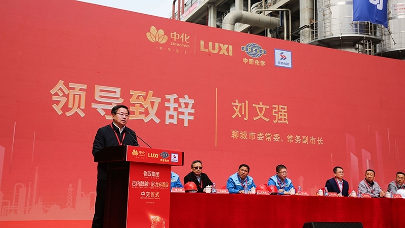 4月2日,魯西集團(tuán)30萬(wàn)噸/年己內(nèi)酰胺·尼龍6項(xiàng)目中交儀式在項(xiàng)目現(xiàn)場(chǎng)隆重舉行。聊城市委常委、常務(wù)副市長(zhǎng)劉文強(qiáng),高新區(qū)黨工委書(shū)記、管委會(huì)主任崔憲奎,公司黨委書(shū)記、董事長(zhǎng)王力剛,公司總經(jīng)理、黨委副書(shū)記王延吉,以及中國(guó)化學(xué)第六、十六公司等建設(shè)方負(fù)責(zé)人出席儀式。